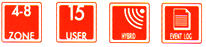 burglary zones, a dedicated panic zone, monitored